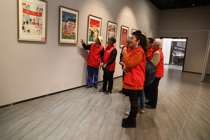 展廳內(nèi),一幅幅畫作以文明為主題,以鄉(xiāng)土為底色,將立德樹人的理念融入筆端,鮮活呈現(xiàn)青少年思想道德建設、校園思政、紅色教育、文明鄉(xiāng)風、家風傳承、文明風尚等生動場景。展覽既彰顯了戶縣農(nóng)民畫獨特的藝術魅力,又傳遞出向善向美的精神力量,實現(xiàn)了藝術表達與精神涵育的有機融合。