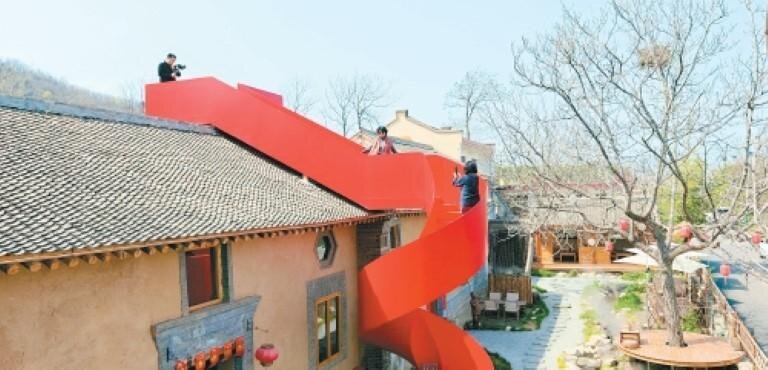 那條紅色S形旋轉(zhuǎn)樓梯,更是成為大家追捧的打卡點(diǎn),蜿蜒向上的線(xiàn)條穿過(guò)整個(gè)庭院,站在制高點(diǎn)隨手一拍都是兼具格調(diào)與氛圍感的大片,吸引著無(wú)數(shù)文旅攝影達(dá)人、青年游客慕名而來(lái)。