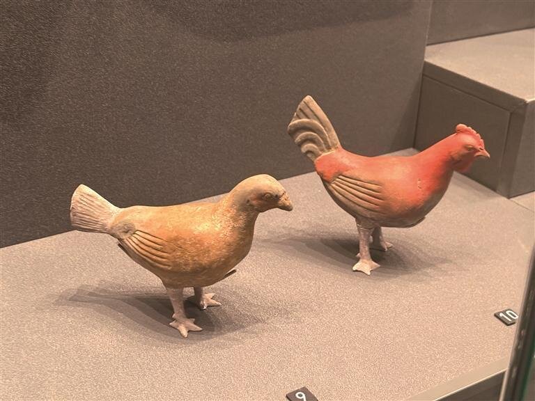 陜西考古博物館工作人員介紹,這兩只彩繪陶雞形態(tài)寫實(shí)、刻畫精細(xì),真實(shí)反映出漢代家禽飼養(yǎng)的面貌與工匠的高超技藝。
