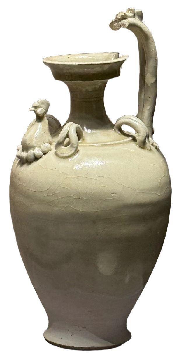 陜西考古博物館館藏白釉四系雞首壺。 陜西日?qǐng)?bào)記者 孫亞婷 攝
