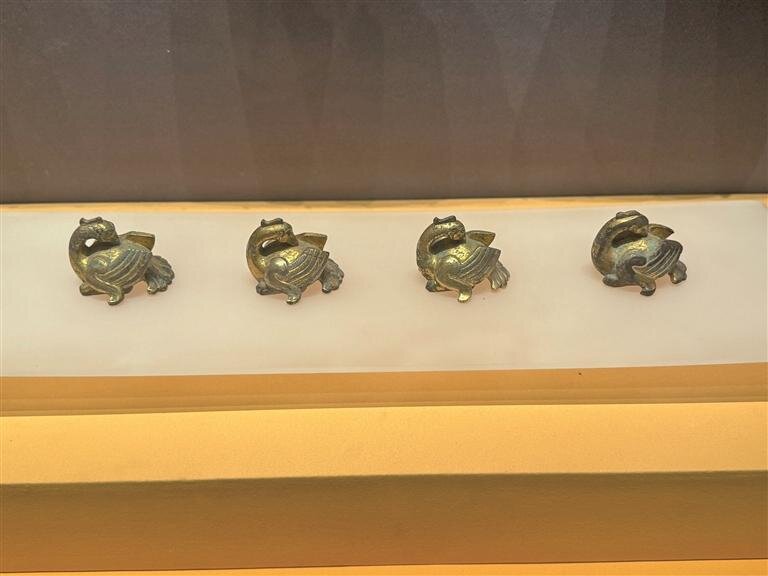 西安博物院館藏鎏金鳳鳥(niǎo)銅鎮(zhèn)。 陜西日?qǐng)?bào)記者 周思言 攝