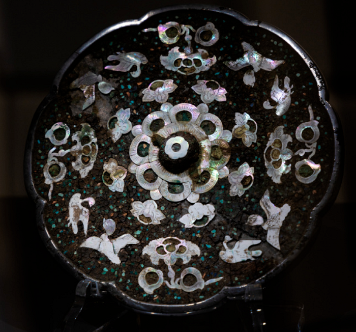 ▲八曲葵花形螺鈿銅鏡-陜西考古博物館藏