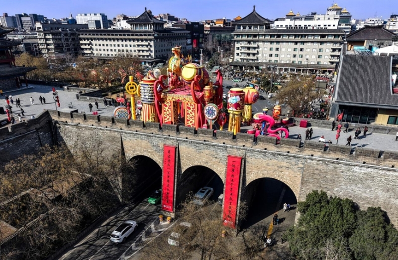 城門上懸掛的巨幅春聯(lián)。西安城墻管委會(huì)供圖