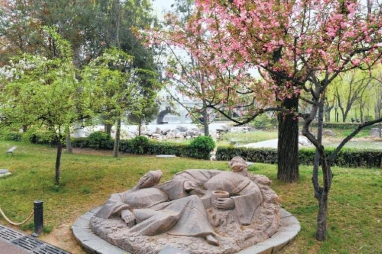 不遠(yuǎn)處的水面上,還有一組《曲江水滿》雕塑,講的是韓愈寫詩(shī)邀白居易同游的舊事。但很少有人停下來(lái)細(xì)看——大家更愿意把時(shí)間花在真實(shí)的春光里。