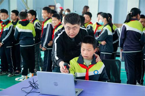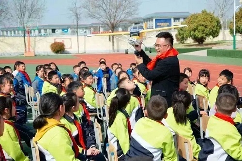 活動正式開啟,學(xué)生們有序進入學(xué)校體育館,老師們和孩子進行了教學(xué)互動。通過“看、聽、折、飛、說”等一系列活動,讓孩子們零距離感受科技魅力,在內(nèi)心播下夢想的種子??础w機是怎么飛上藍天的,無人機是如何被指揮形成編隊飛行;聽——老師講解航空航天知識和人工智能的未來應(yīng)用;折——運用小小一張紙折出專屬自己的紙飛機;飛——讓同學(xué)們借助操縱桿感受飛行的基本原理和駕駛的無限樂趣;說——孩子們講述著自己的夢想和對未來科技的想象。通過“五位一體”的教學(xué)互動,孩子們?nèi)轿惑w驗飛行、感悟飛機工程師們的“工匠”精神、了解飛機結(jié)構(gòu)原理和飛行原理。通過編程代碼讓無人機自主飛行,培養(yǎng)孩子們“創(chuàng)新、協(xié)作、進取”的精神,傳承航空航天科研工作者“航空報國”的精神,厚植愛國主義情懷,為培養(yǎng)德智體美勞全面發(fā)展的社會主義建設(shè)者和接班人不懈努力。