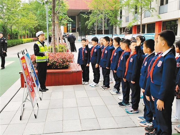 其中,警務(wù)室主要任務(wù)是及時(shí)消除校園安全隱患,全力保障師生人身安全:護(hù)學(xué)崗作為校園周邊的安全護(hù)衛(wèi),為學(xué)生保駕護(hù)航,讓學(xué)生出入平安;法制小課堂通過法制教育活動(dòng),使法治觀念從“娃娃抓起”,在學(xué)生中入心入腦、生根發(fā)芽;調(diào)解會(huì)客室對校內(nèi)各類矛盾定紛止?fàn)帲瑢π@周邊排查整治,讓校園環(huán)境風(fēng)清氣正、清朗明媚;家庭教育工作室向廣大家長解讀相關(guān)法律法條、明確“依法帶娃”責(zé)任;心理疏導(dǎo)室配合學(xué)校心理輔導(dǎo)老師,從心出發(fā)、凝心鑄魂,以學(xué)生心理防線鞏固校園安全防線。
