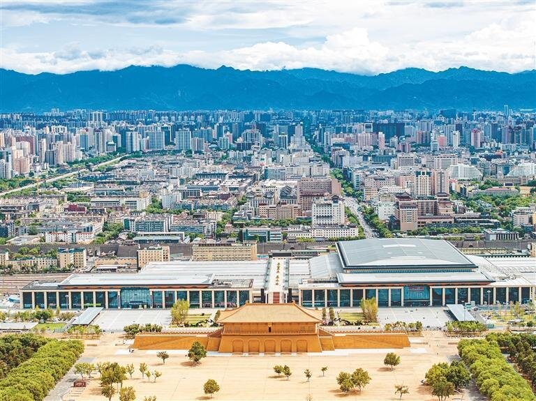 7月24日,從空中俯瞰西安大明宮國家遺址公園,千年皇家宮苑與現(xiàn)代交通樞紐“隔空對(duì)話”,一幅古今交融的城市畫卷徐徐展開。 ?。ㄓ浾?竇翊明 攝)