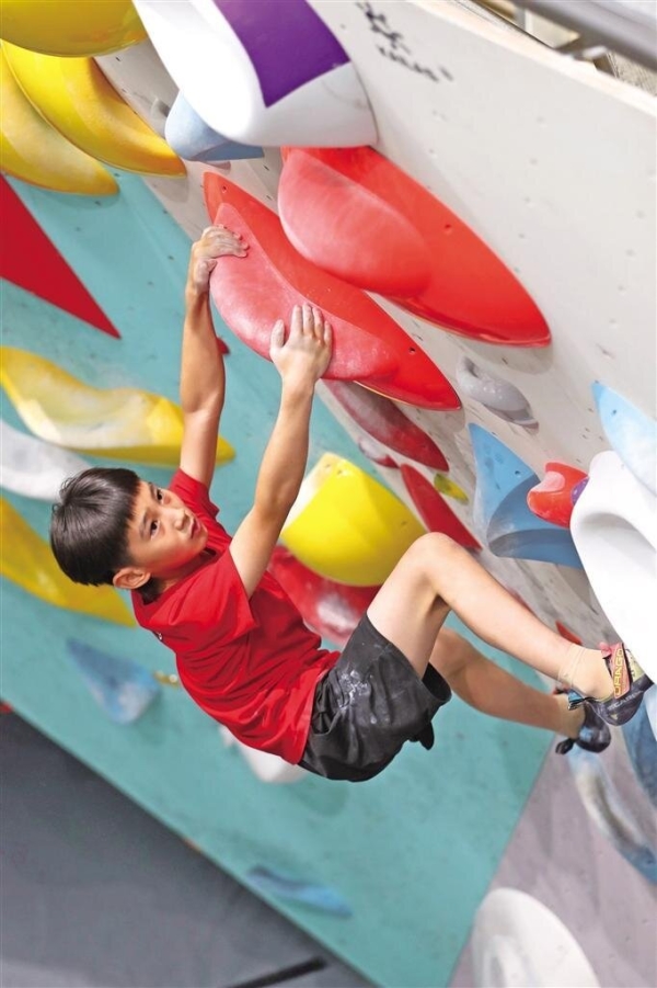 8月26日,在西安市雁塔區(qū)“我攀·西安”攀巖館,小朋友在教練指導(dǎo)下進行攀巖訓(xùn)練。陜西日報 記者 肖陽熠攝