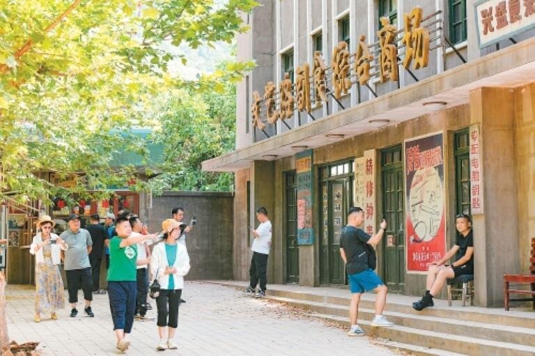市民游客在西影風(fēng)雷年代影視基地游玩拍照。