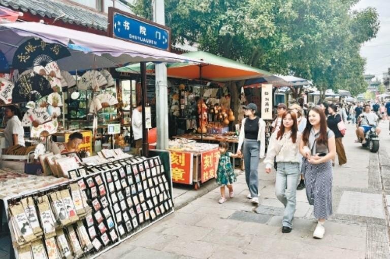 9月7日,市民游客在書院門休閑游覽。在書院門,各類筆墨紙硯、書畫文玩、非遺作品琳瑯滿目,市民游客漫步青石鋪砌的街道,仿佛穿梭于文化的長(zhǎng)廊,在墨香中感受古城獨(dú)特的文化魅力。 (西安日?qǐng)?bào) 記者 郝鐘毓 實(shí)習(xí)生 郝雨辰一攝)