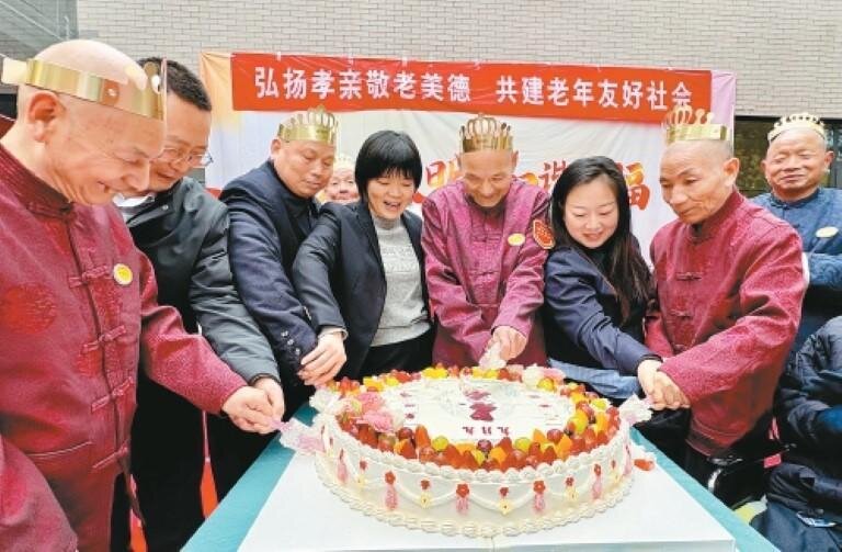 10月25日,工作人員與老人們一起切蛋糕,共慶生日。當日,長安區(qū)王莽區(qū)域敬老院聯(lián)合長安老年大學,開展以“弘揚孝親敬老美德,共建老年友好社會”為主題的重陽節(jié)系列文化互動活動,通過文藝展演、志愿服務、共慶生日、愛心捐贈等方式,豐富老年群體精神生活,搭建起“老有所依、老有所樂”平臺。 (記者 王旭東 攝)