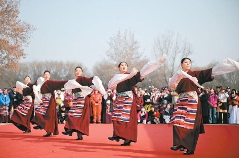 1月17日,一場(chǎng)藏族非遺展演在西安大明宮國家遺址公園舉行,來自西藏自治區(qū)昌都市基層文藝團(tuán)體的演員用精彩的節(jié)目展示藏族文化魅力。