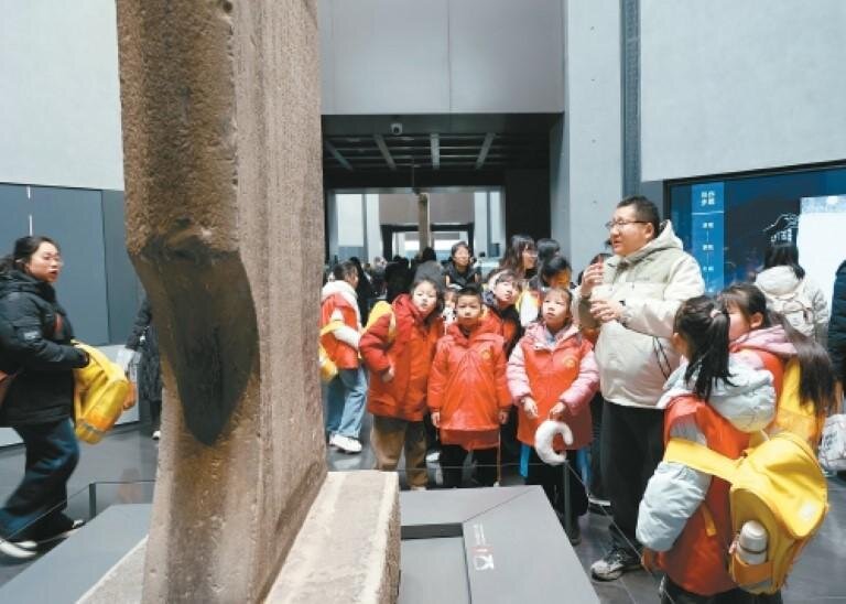 2月3日,在西安碑林博物館,孩子們?cè)诶蠋煹闹v解下,開啟沉浸式文化研學(xué)之旅。當(dāng)日,西安市婦聯(lián)開展“把愛帶回家——暖心護(hù)航伴成長”暨“童心共融 古都筑夢(mèng)”兒童關(guān)愛活動(dòng),市婦聯(lián)、西安新東方學(xué)校以及藍(lán)田縣30組“愛心媽媽”與結(jié)對(duì)留守困境兒童共同參與。活動(dòng)通過游覽博物館、動(dòng)手制作非遺花燈、安全知識(shí)小講堂等環(huán)節(jié),以暖心關(guān)懷與實(shí)際行動(dòng)護(hù)航少年兒童健康快樂成長。(西安日?qǐng)?bào) 首席記者 翟小雪 攝)