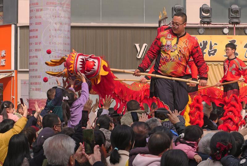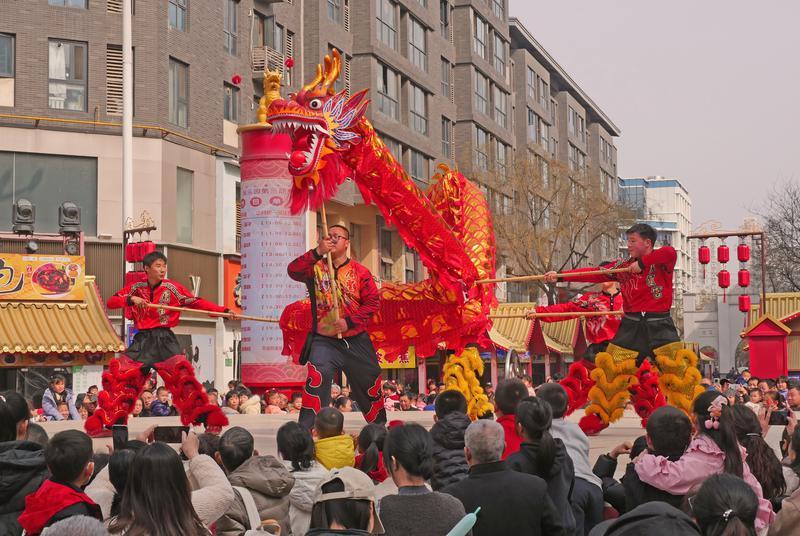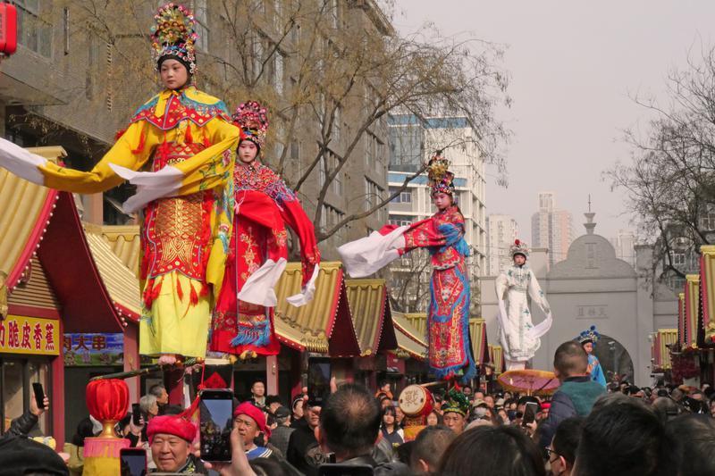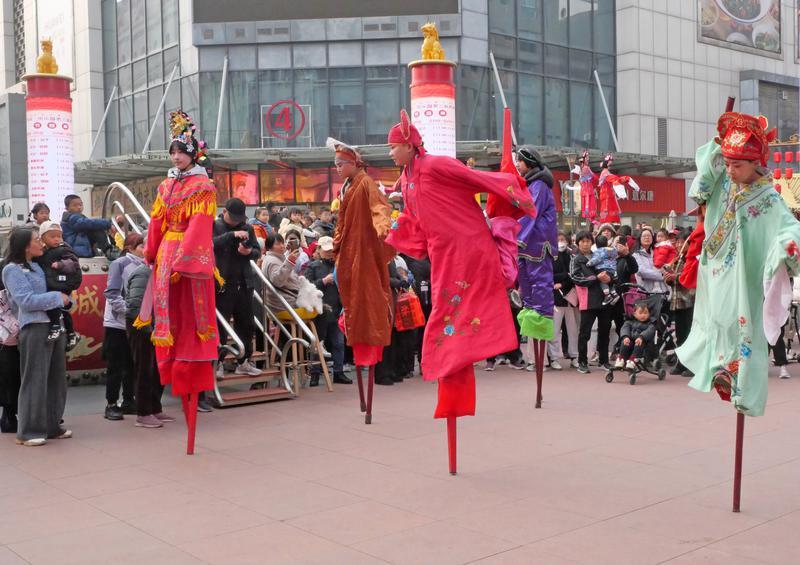 2月27日,西安皇城里?民樂園第三屆新春文化節(jié)火熱進(jìn)行中。高蹺、背芯子、舞龍、舞獅等非遺社火表演輪番登場,身著彩衣的藝人踩高蹺騰躍,精巧的背芯子驚艷亮相,紅黃舞獅與祥龍穿梭人群,不時與觀眾互動。精彩紛呈的非遺展演吸引大批市民駐足拍照,現(xiàn)場鑼鼓喧天、人氣爆棚,濃濃的年味兒彌漫在街頭巷尾,盡顯西安新春的熱鬧與喜慶。