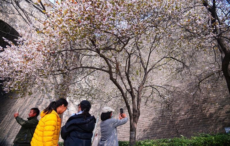 3月15日,春風(fēng)送暖,西安城墻下紫葉李競(jìng)相綻放,粉白的花朵綴滿枝頭,與古樸厚重的城墻相映成趣,勾勒出一幅“花映古城”的春日盛景,吸引眾多市民游客前來(lái)踏青賞花、打卡留念。 (前方+客戶端 西安報(bào)業(yè)全媒體記者 王健 攝)