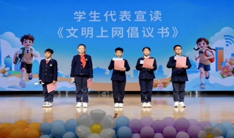 活動(dòng)現(xiàn)場,學(xué)生代表共同宣讀《文明上網(wǎng)倡議書》,呼吁大家提升網(wǎng)絡(luò)素養(yǎng),規(guī)范上網(wǎng)行為,用實(shí)際行動(dòng)爭做文明上網(wǎng)的踐行者、網(wǎng)絡(luò)正能量的傳播者。
