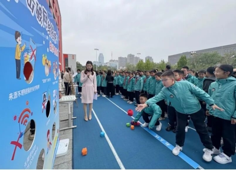 操場上的互動(dòng)區(qū)設(shè)置了“網(wǎng)絡(luò)安全大轉(zhuǎn)盤”“拼圖挑戰(zhàn)”“擊破網(wǎng)絡(luò)陷阱”投沙包等趣味闖關(guān)游戲,讓孩子們?cè)谕嬷袑W(xué)、在學(xué)中悟,把網(wǎng)絡(luò)安全知識(shí)從“聽過”變成“會(huì)用”。“所有游戲全部通關(guān)!”五年級(jí)學(xué)生周詩淼拿著兌換來的“網(wǎng)絡(luò)文明小衛(wèi)士”定制徽章興奮地說。