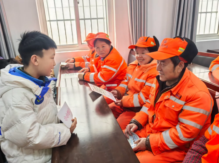 “爺爺,您每天幾點(diǎn)開始工作?”“我們做什么可以幫到您?”隨后,孩子們圍繞日常工作流程、作息時(shí)間、特殊天氣作業(yè)等話題,與環(huán)衛(wèi)工人展開面對面交流。環(huán)衛(wèi)工人們耐心地分享著工作日常,講述著平凡崗位上的堅(jiān)守與付出,孩子們認(rèn)真聆聽,紛紛表示今后將從自身做起,更加愛護(hù)環(huán)境衛(wèi)生。