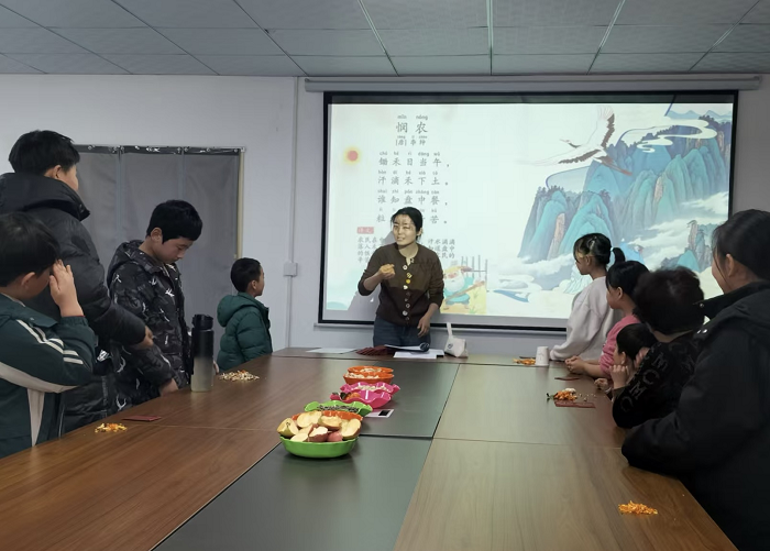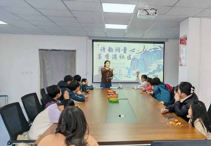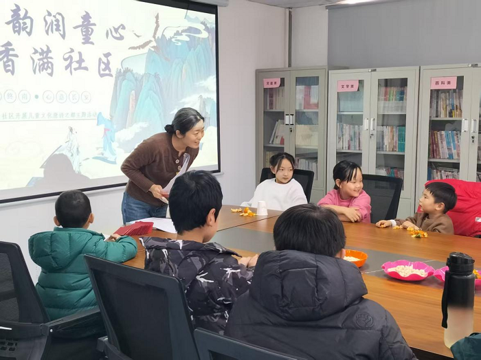 活動現(xiàn)場,社區(qū)工作者帶領(lǐng)孩子們聲情并茂地誦讀《靜夜思》《春曉》《望廬山瀑布》等千古名篇,郎朗童聲回蕩在社區(qū),一句句經(jīng)典詩詞抑揚(yáng)頓挫、情真意切,孩子們在誦讀中感受經(jīng)典詩詞的韻律之美,沉浸式領(lǐng)略中華傳統(tǒng)文化的深厚底蘊(yùn)。在唐詩鑒賞環(huán)節(jié),社區(qū)工作者以生動有趣的語言,為孩子們講解詩句背后的歷史故事、創(chuàng)作意境與情感內(nèi)涵,從詩人的家國情懷到山水田園的秀麗風(fēng)光,孩子們認(rèn)真聆聽、積極思考,在深入淺出的講解中讀懂詩詞、愛上詩詞。