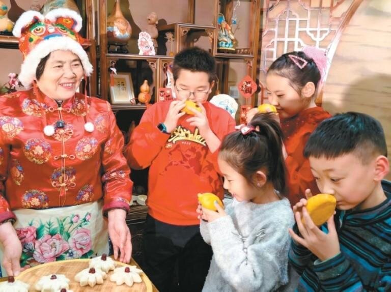 在碑林區(qū)文化館,雁塔路小學(xué)的孩子們感受非遺花饃的魅力。(受訪者供圖)
