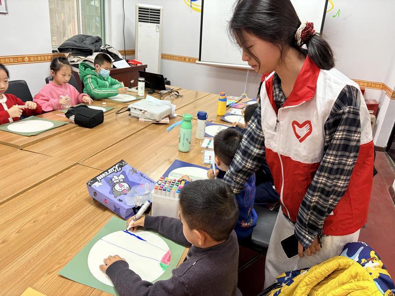 志愿者耐心指導(dǎo),鼓勵(lì)孩子們動(dòng)手實(shí)踐。