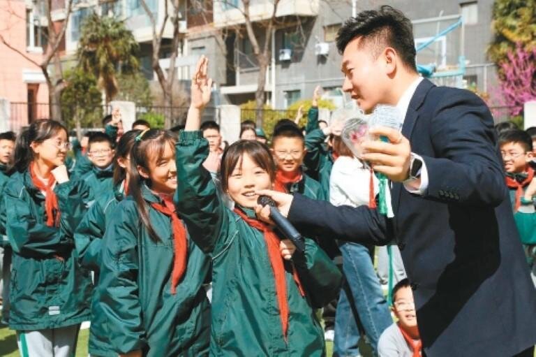 西安高新涇河小學(xué)讀書月啟動(dòng)儀式上的“猜書名”互動(dòng)環(huán)節(jié)。(學(xué)校供圖)