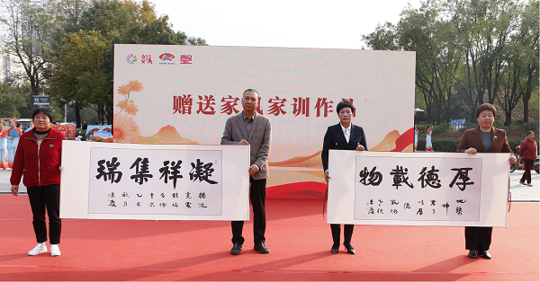 活動當天,西安市文學藝術界聯(lián)合會還特別創(chuàng)作了“厚德載物”“凝祥集瑞”等家風家訓書法作品,現(xiàn)場贈送給余下街道“西安好人”劉希梅、“市級文明家庭”孫清家庭,以文藝形式弘揚美德、傳遞新風。