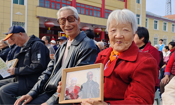 在廣場一側,“愛滿金秋 歲月情長”公益攝影區(qū),老人們手持“愛在重陽”“歲月靜好”等主題卡片,在攝影志愿者的引導下,留下溫馨瞬間?!鞍⒁炭催@里,笑一笑!對,就這樣!”“叔叔,再靠近一點!”——快門咔嚓響,一張張幸福與溫暖的笑臉定格在秋日暖陽下?!敖裉煺媸翘_心了!檢查了身體,還和老伴拍了張好看的合影,看了這么多文藝節(jié)目,感覺心里暖烘烘的!”邵清潔喜悅的說。據了解,此次活動共為轄區(qū)50多位老人定制了“幸福笑臉照”,用影像記錄溫暖,傳遞文藝關懷。