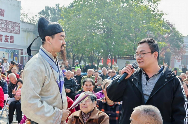 多個(gè)文藝節(jié)目則為整場活動(dòng)增添了濃厚的藝術(shù)氣息?!拔豪细笪枧_(tái)”藝術(shù)團(tuán)帶來的快板小品《巧逢重陽接娘歸》,以詼諧幽默的方式演繹家庭敬老故事,歌曲《鄉(xiāng)戀》則以深情婉轉(zhuǎn)的旋律唱出了游子對(duì)故鄉(xiāng)的深深眷戀,引發(fā)觀眾陣陣掌聲和共鳴;村民們帶來的鼓舞《紅紅火火》、廣場舞《歡聚一堂》展現(xiàn)了新時(shí)代農(nóng)民的精神風(fēng)貌,快板《秋高氣爽度重陽》用傳統(tǒng)曲藝形式表達(dá)了敬老愛老的深厚情感。