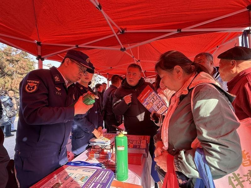 消防人員向市民介紹相關(guān)法律知識(shí)