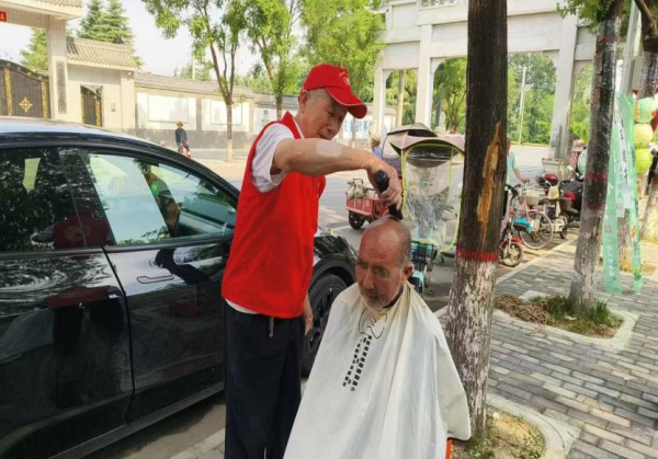 一傳十,十傳百,方圓數里的五保老人,困難、弱勢病殘人群都慕名前來。9年來,他不僅分文不取,還自掏腰包購置剪刀、推子、披風、梳子等工具。為精進手藝,他一有空就去街道上的理發(fā)店“偷師學藝”。除了在固定地點服務,他還定期上門為行動不便的老人理發(fā),他待人熱情,從不嫌棄衛(wèi)生條件差的服務對象,總是耐心地為他們洗頭、刮胡子。一把冰冷的剪刀,在他手中成了傳遞溫度的紐帶,既讓居民煥發(fā)光潔,更潤物無聲地引領著新時代的“鋒”尚潮流。