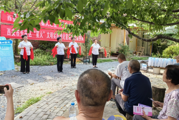創(chuàng)新活動(dòng)形式,增強(qiáng)參與吸引力。建強(qiáng)“1+20+16+N”文明實(shí)踐隊(duì)伍體系,孵化了“微星跑腿”“暖心敲門”等服務(wù)品牌,推動(dòng)政策宣傳、矛盾調(diào)解等“大主題”通過“小切口”落地見效。例如,“星火”理論宣講隊(duì)采用“六步法”,將黨的創(chuàng)新理論融入秦腔、快板等藝術(shù)形式,開展宣講1800余場(chǎng)次,覆蓋群眾超15萬人次,入選全省優(yōu)秀案例,讓理論宣講變得生動(dòng)有趣、入腦入心,有效增強(qiáng)了文明實(shí)踐的傳播力和感染力。