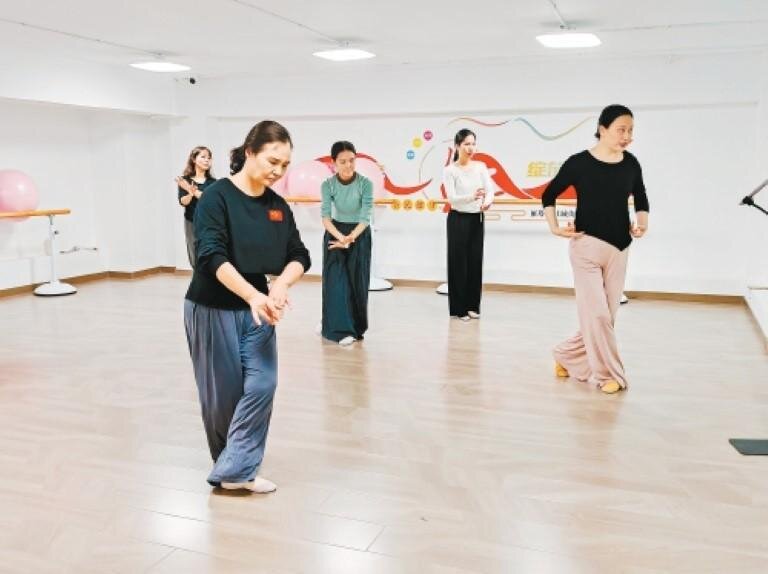 2024年,剛滿50歲的陳芳從精密制造領(lǐng)域退休,數(shù)十年忙碌的工作節(jié)奏突然停下,讓她一度陷入迷茫?!巴蝗婚e下來的日子,渾身都不自在。”一次偶然的機(jī)會,社區(qū)“緣聚藝術(shù)團(tuán)”的排練聲吸引了她的目光。“她們跳舞時(shí)眼里有光,那種熱愛感染了我,我也想試試。”