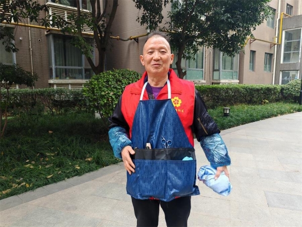 “這是我親手改造的‘流動理發(fā)兜’,也是我的寶貝!”他拍著圍兜笑著介紹,考慮到經(jīng)常上門或戶外義剪,沒有固定工具柜,他便用家里現(xiàn)成的圍裙,踩著縫紉機縫出分層口袋。不用扛沉重的工具箱,往身上一系就能出發(fā),既解放了雙手,又能隨時支起便民攤位,讓流動服務(wù)更高效。