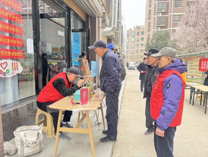 活動現(xiàn)場,工作人員精心設置了理發(fā)、修鎖、縫紉等多個便民服務攤位,吸引了不少居民前來參與。義剪區(qū)里,志愿者耐心詢問居民的需求,手法嫻熟細致,為老人、孩子修剪出清爽利落的發(fā)型;修鎖攤位前,志愿者認真為居民檢修門鎖、配鑰匙,耐心講解日常鎖具保養(yǎng)知識;縫紉服務處,志愿者細心縫補衣物,更換拉鏈,一件件破損衣物在巧手下煥然一新。