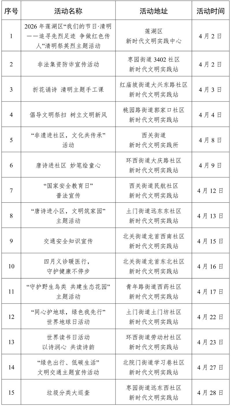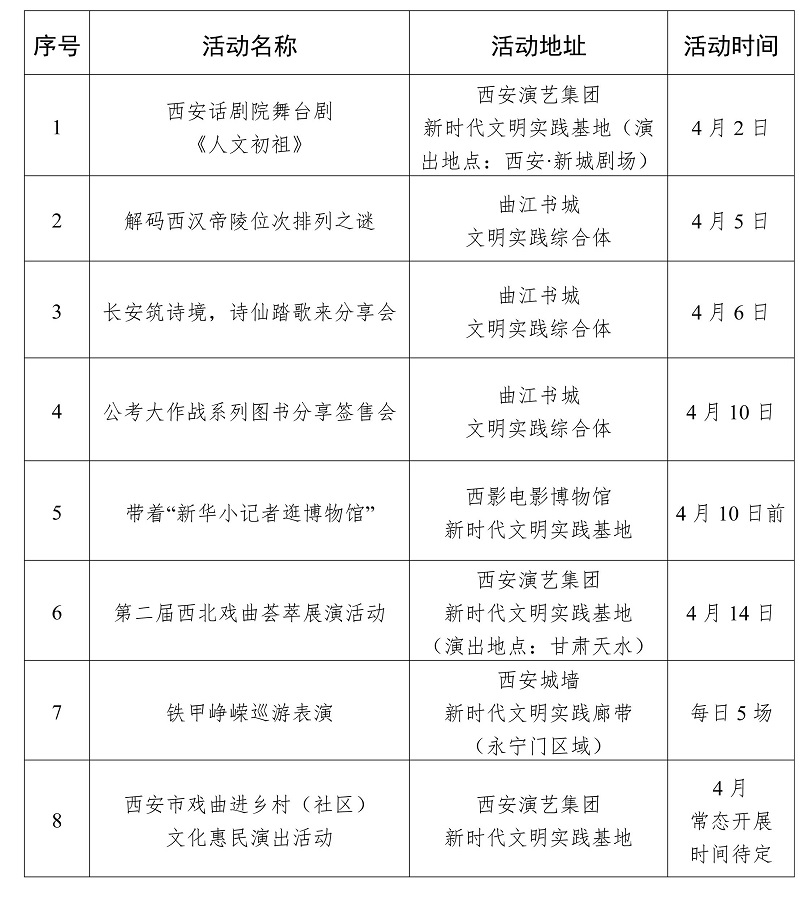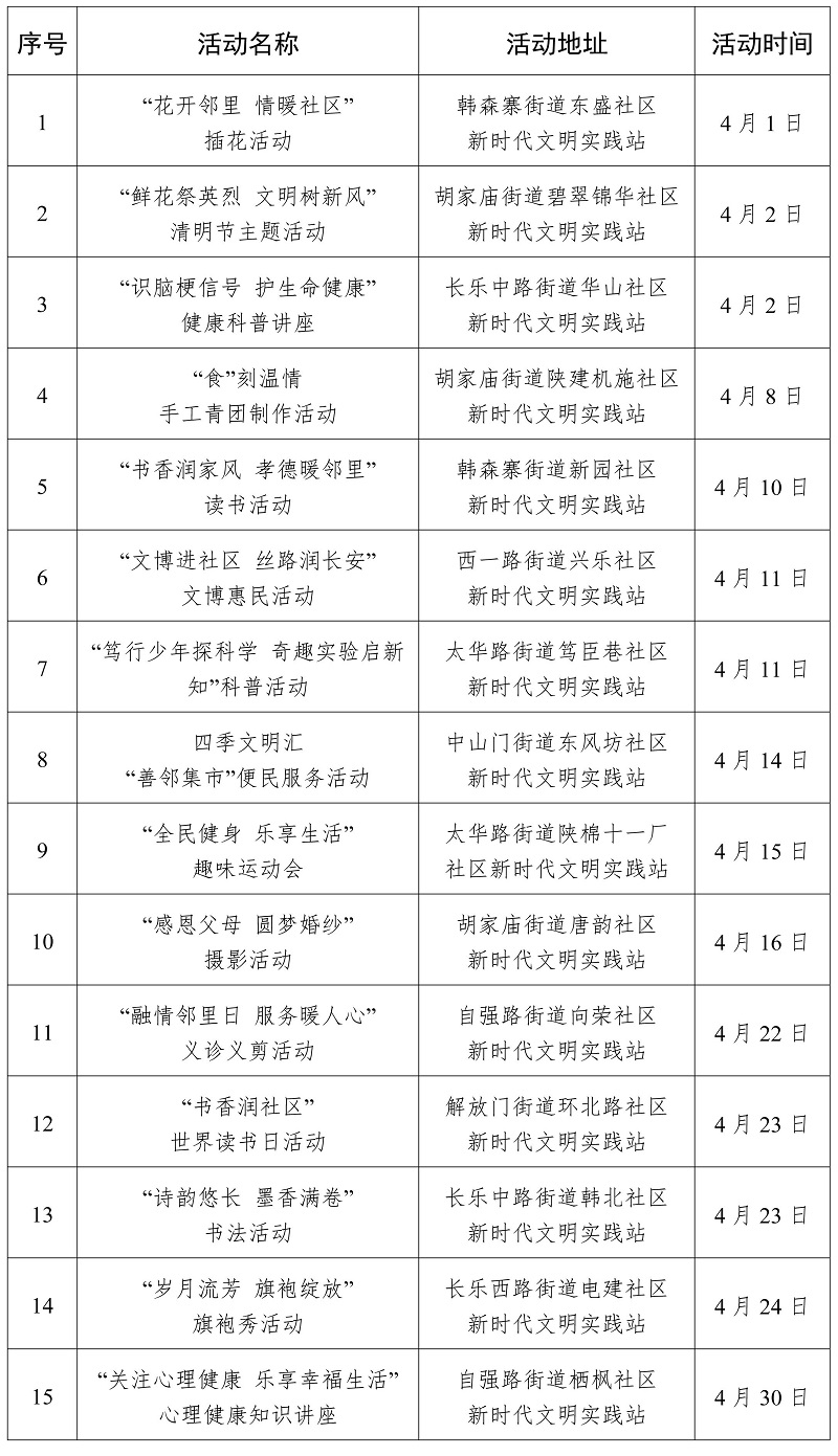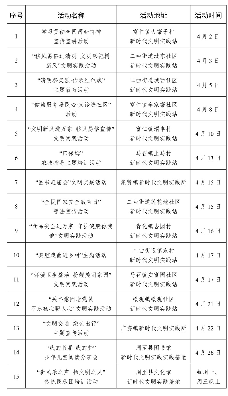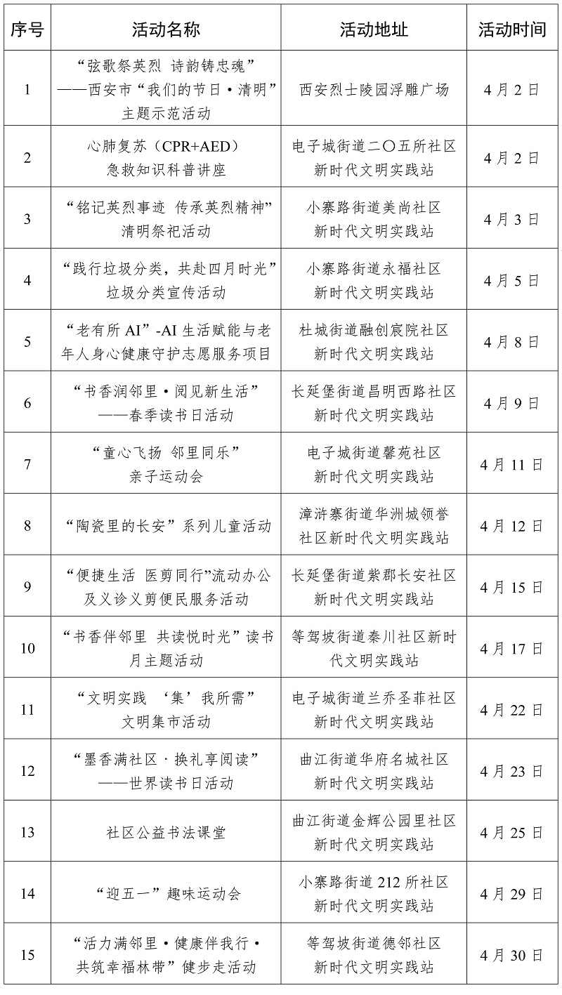 2026年4月西安市新時代文明實踐活動“菜單”