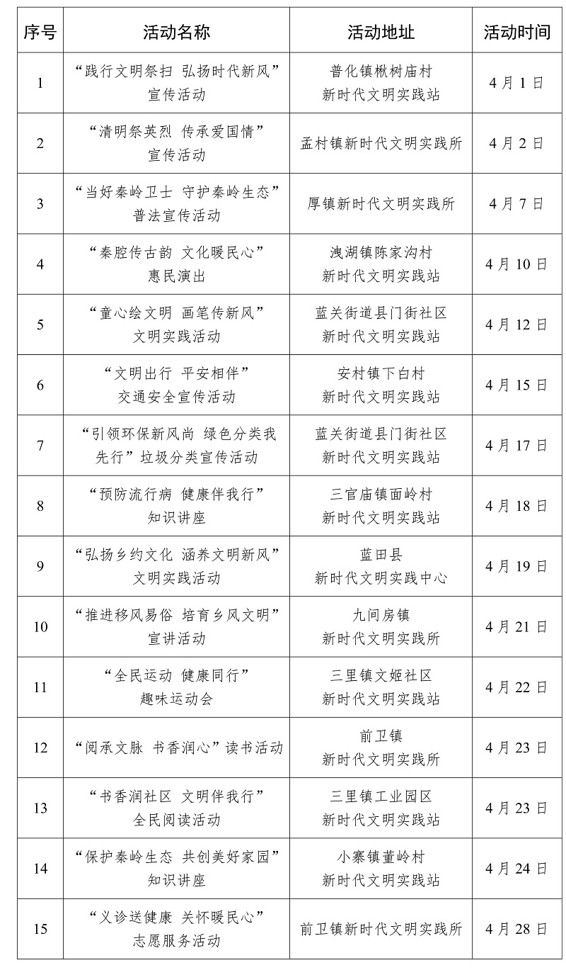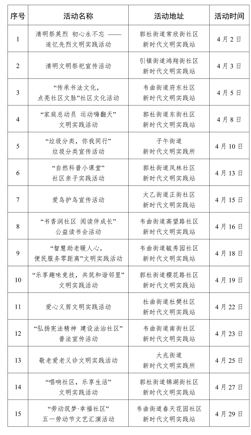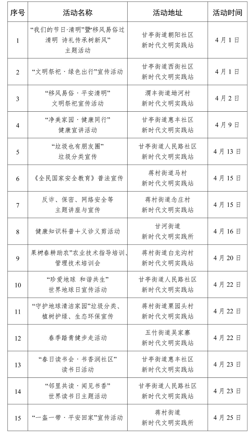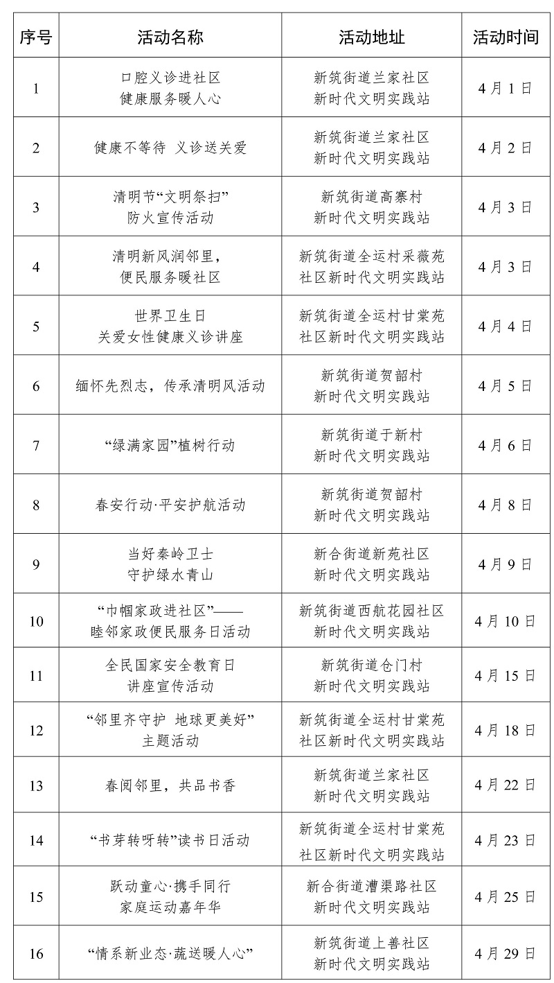 2026年4月西安市新時代文明實踐活動“菜單”