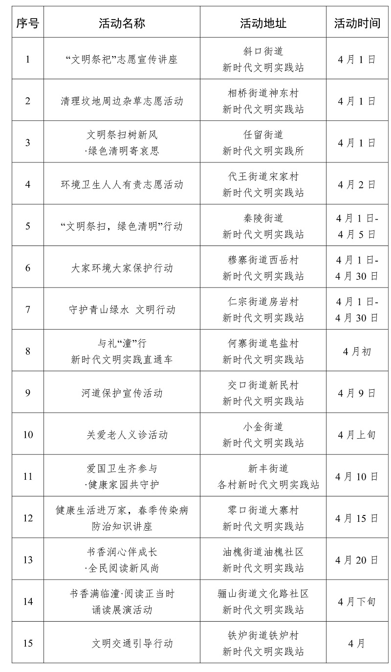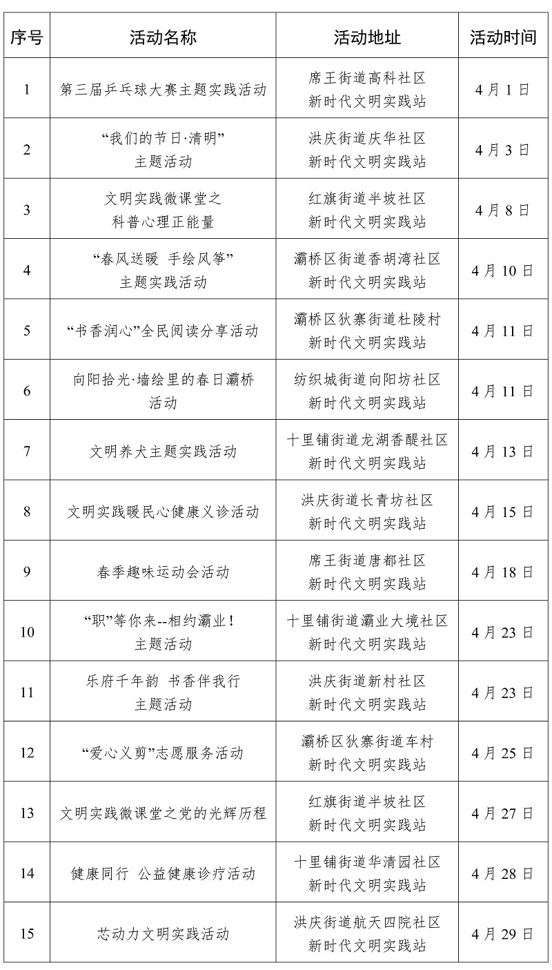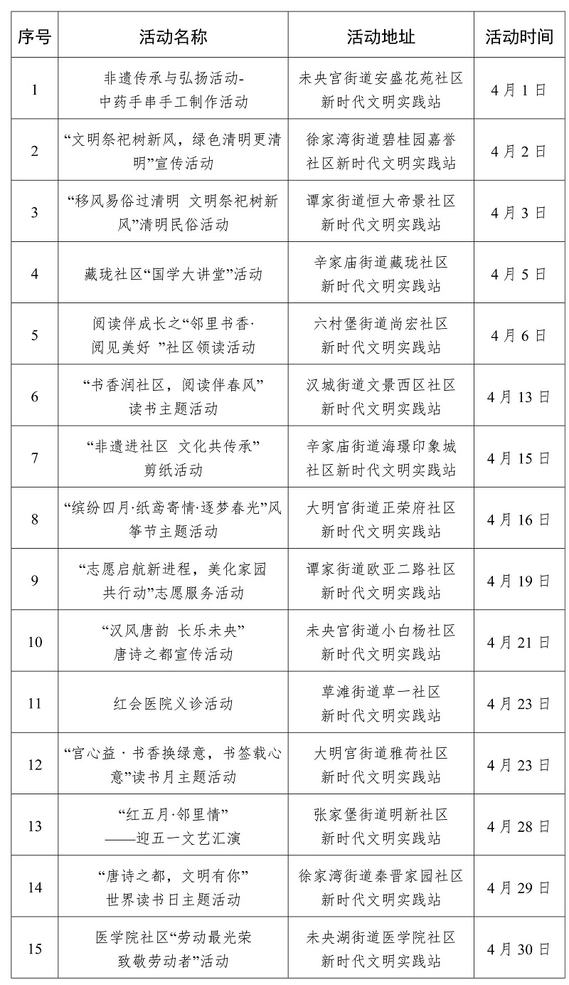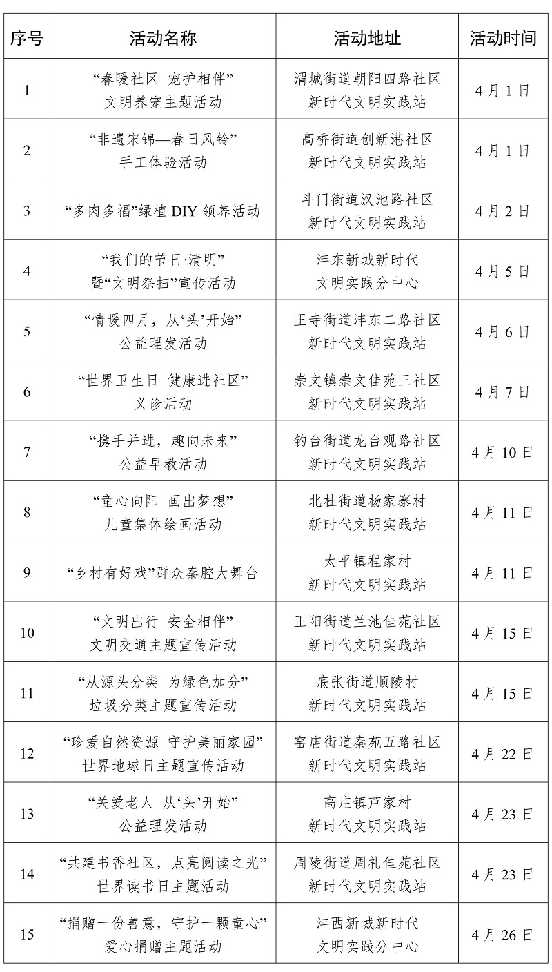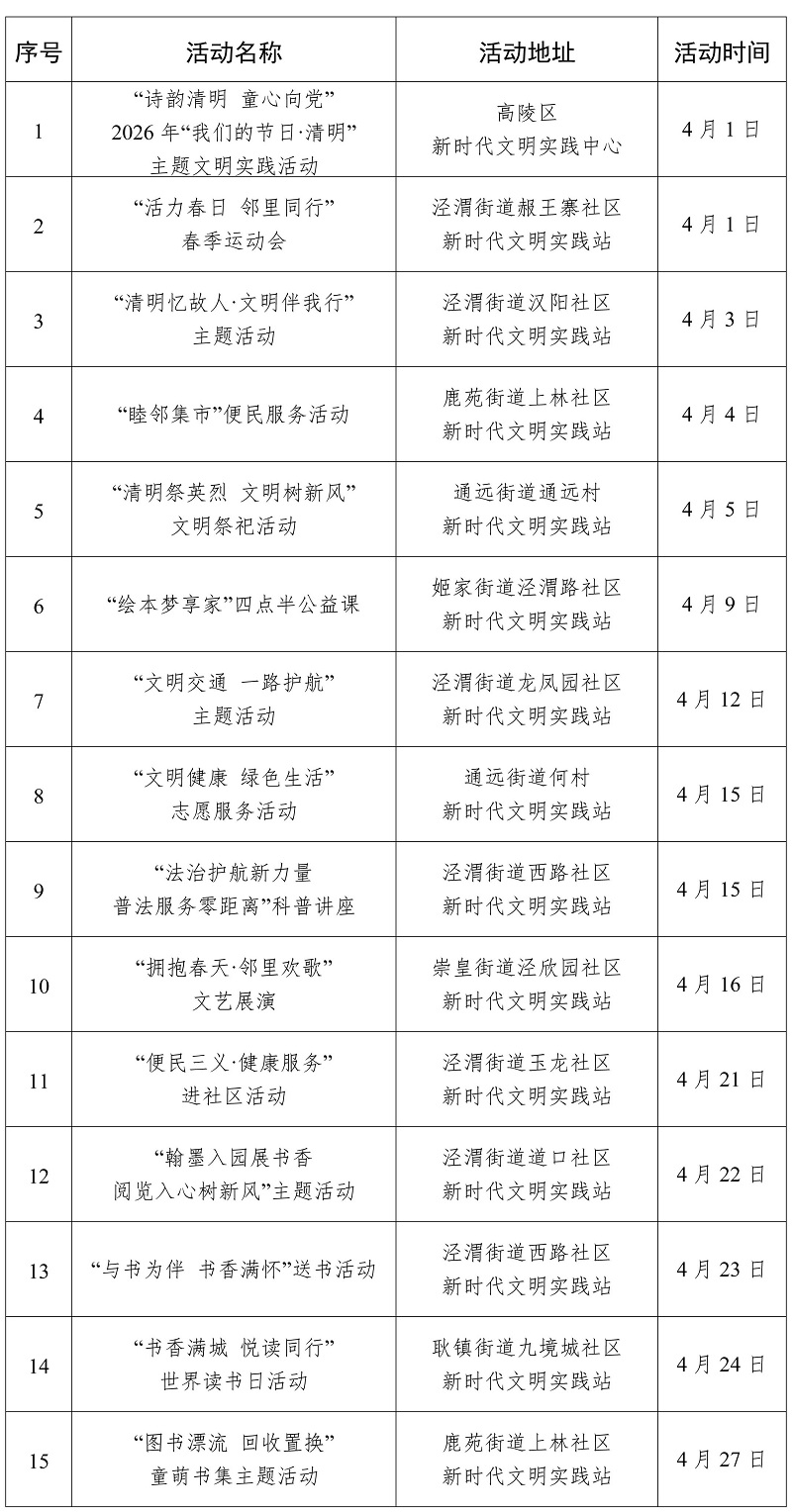 2026年4月西安市新時代文明實踐活動“菜單”