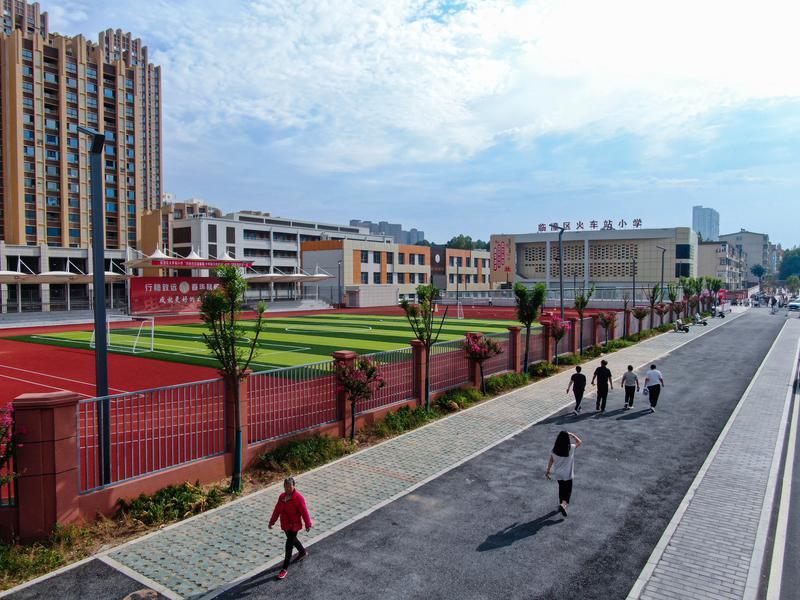 “現(xiàn)在送孩子上學只需步行5分鐘,道路平坦安全,放學后娃還能在廣場玩耍?!迸R潼區(qū)火車站小學二年級學生家長李磊欣喜地說。