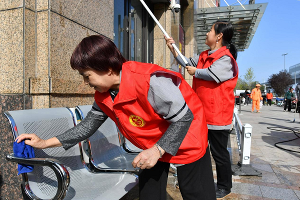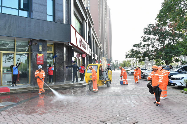 在頤馨濕地、碧水灣小區(qū)活動現(xiàn)場,城管隊員、志愿者和保潔員們手持高壓水槍、抹布、刮刀等工具,對店鋪玻璃門、步行街道、交通護欄、果皮箱等公共設施進行深度清潔,用實際行動為群眾打造干凈、整潔、有序的居住與經(jīng)營環(huán)境。