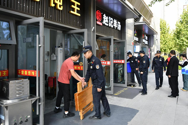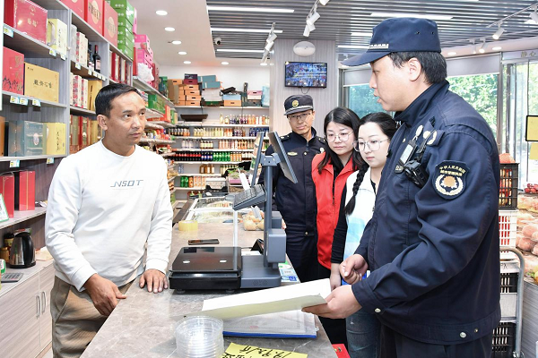 “老板,門口衛(wèi)生、車輛停放都是‘門前三包’的范圍,咱們?nèi)粘P枰⒁庖幌??!痹谡猩坛鞘醒肱闲^(qū)周邊商鋪內(nèi),城管隊員逐戶指導商戶落實門前“三包”責任,耐心細致地講解“門前三包”制度的內(nèi)容與意義,從環(huán)境衛(wèi)生維護到市容秩序管理,用通俗易懂的語言讓商戶明晰自身責任。針對巡查中發(fā)現(xiàn)的占道堆放、跨門檻經(jīng)營、違規(guī)停車等各類問題,執(zhí)法隊員明確告知商戶此類行為違反“門前三包”規(guī)定,督促其整改,并協(xié)助店家將出店經(jīng)營的貨物移回店內(nèi)。商戶們積極配合,紛紛表示將自覺遵守相關規(guī)定,同時主動引導消費者規(guī)范停車、文明消費。