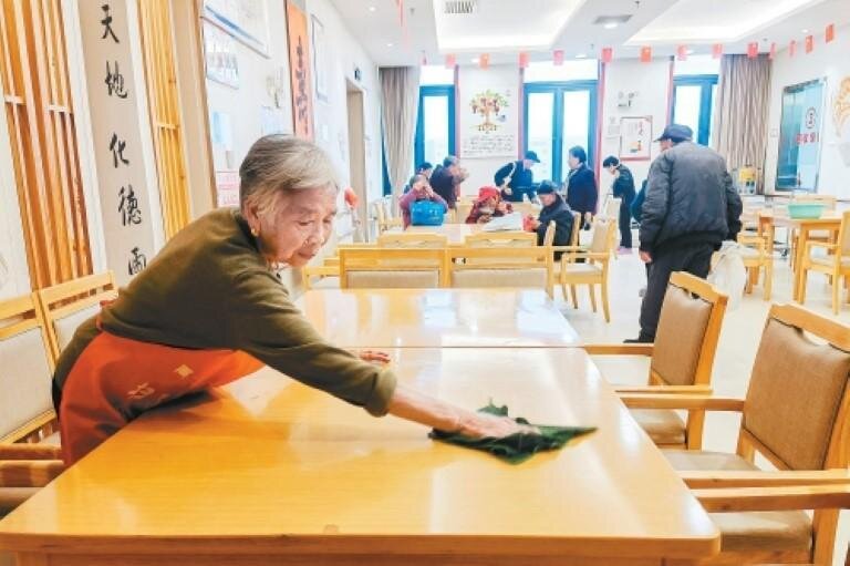 “莫道桑榆晚,為霞尚滿天”,這股熱情很快傳開。就餐的老人、有空的老人紛紛主動報名:有人要幫后廚洗菜切菜,有人要在前廳傳菜端飯,還有人搶著打掃衛(wèi)生。