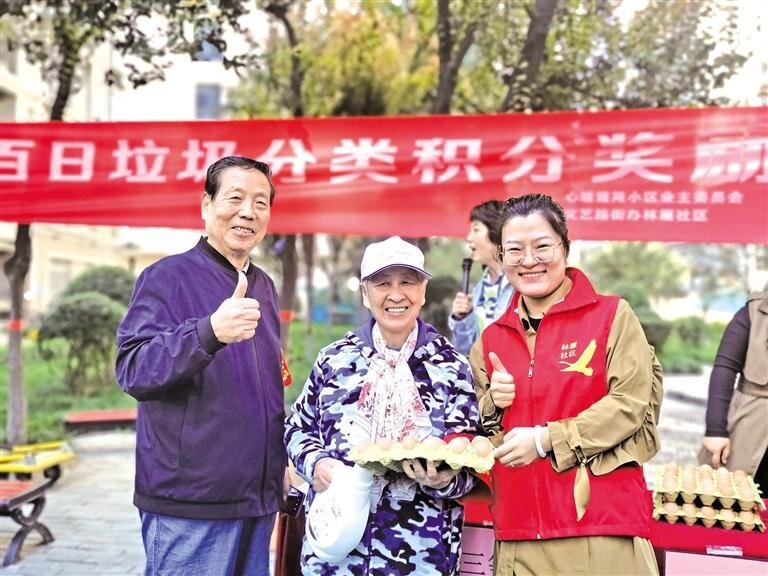 碑林區(qū)文藝路街道林雁社區(qū)心晴雅苑小區(qū)的垃圾分類積分獎勵活動,吸引居民參與(資料照片)。 受訪者供圖