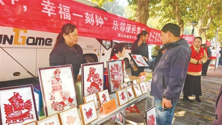 活動現(xiàn)場特別設置非遺剪紙主題展區(qū)?!凹艏埵且婚T手藝,能陪伴我們度過快樂時光?!鄙鐓^(qū)居民南淑蘭感慨,“這些剪紙把咱老輩兒的節(jié)日記憶都‘剪’活了,比看畫兒更親切?!?/p>