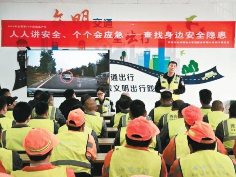 3月25日下午,事故處理與安監(jiān)中隊、漢長安城中隊聯(lián)合環(huán)衛(wèi)企業(yè),組織管理人員及環(huán)衛(wèi)工人召開交通安全警示教育專題會。會上,全員集中觀看警示教育片,民警結(jié)合轄區(qū)典型事故案例,緊扣環(huán)衛(wèi)工人一線作業(yè)特性,講解作業(yè)規(guī)范、出行防護(hù)及應(yīng)急處置要點,糾正不規(guī)范作業(yè)行為,壓實企業(yè)安全管理主體責(zé)任。