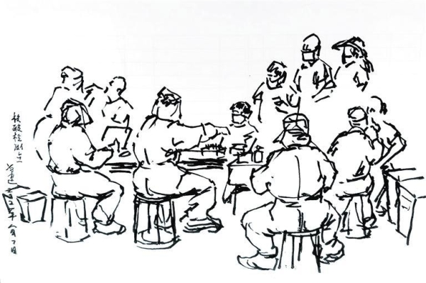 做完核酸采集的一位市民畫(huà)下全員核酸采集場(chǎng)景。(通訊員 郜雅昱 張麗姝 攝)