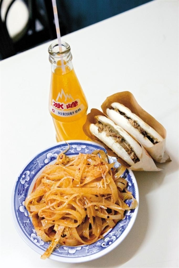 三秦套餐:涼皮、肉夾饃、冰峰汽水?! 。ㄙY料圖片 記者 翟小雪 攝)