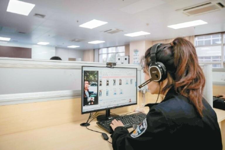 工作人員通過視頻快處系統(tǒng)為市民處理交通事故。