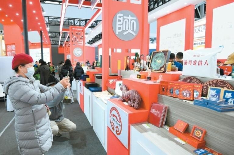 絲博會的陜西文物展廳內(nèi),各具博物館特色的文創(chuàng)產(chǎn)品琳瑯滿目,吸引眾多市民駐足拍照。(資料圖片)