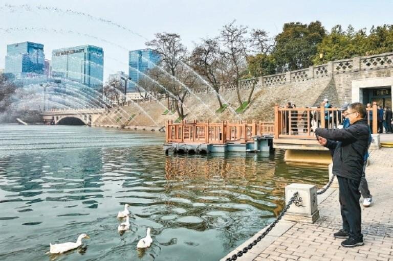 “小時候的護城河河水很淺且渾濁,一到夏天總是散發(fā)一股味道。你看現(xiàn)在,晨練時能沿著親水平臺一路走到底,水清岸綠,魚翔淺底,護城河畔成了家門口的生態(tài)氧吧?!比缃?,聽說護城河火車站段也迎來了通水的關(guān)鍵節(jié)點,家住在環(huán)城公園的趙先生滿心期待地表示,不久后要帶著家人去看看這片美麗的風景。